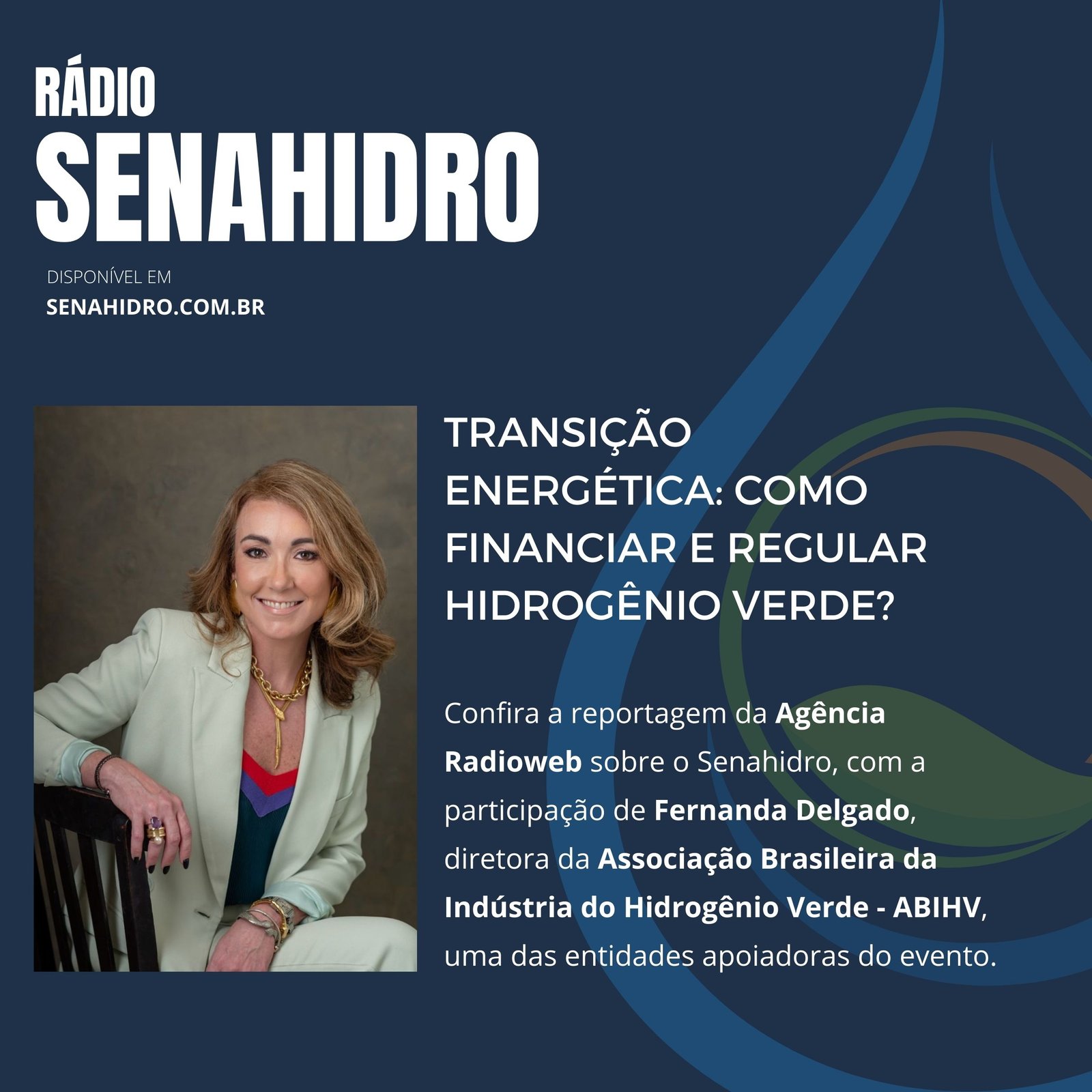 Confira a reportagem da Agência Radioweb sobre o Senahidro, com a participação de Fernanda Delgado, diretora da Associação Brasileira da Indústria do Hidrogênio Verde – ABIHV, uma das entidades apoiadoras